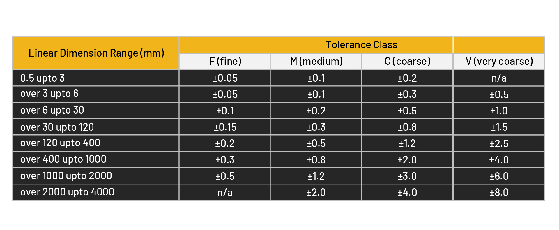 Dimensional Tolerances: